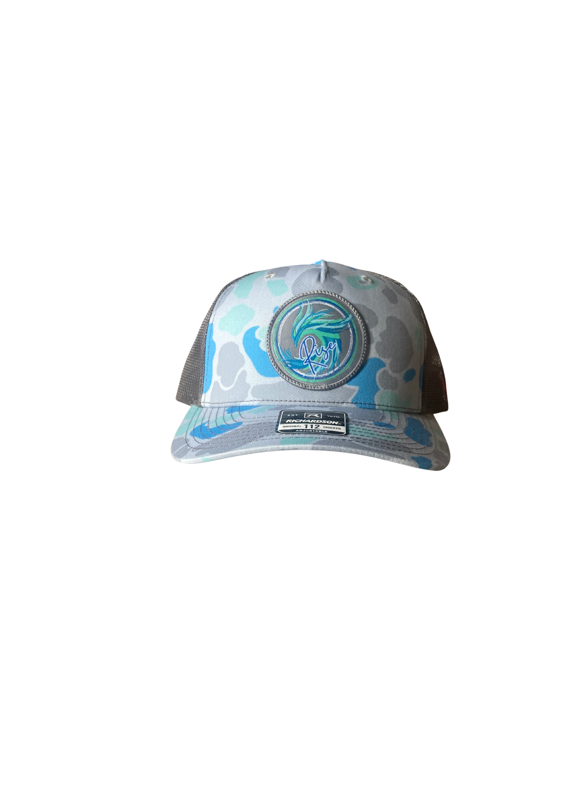 The acclaimed 112 Trucker takes to the outdoors with this printed five-panel blue/grey version.